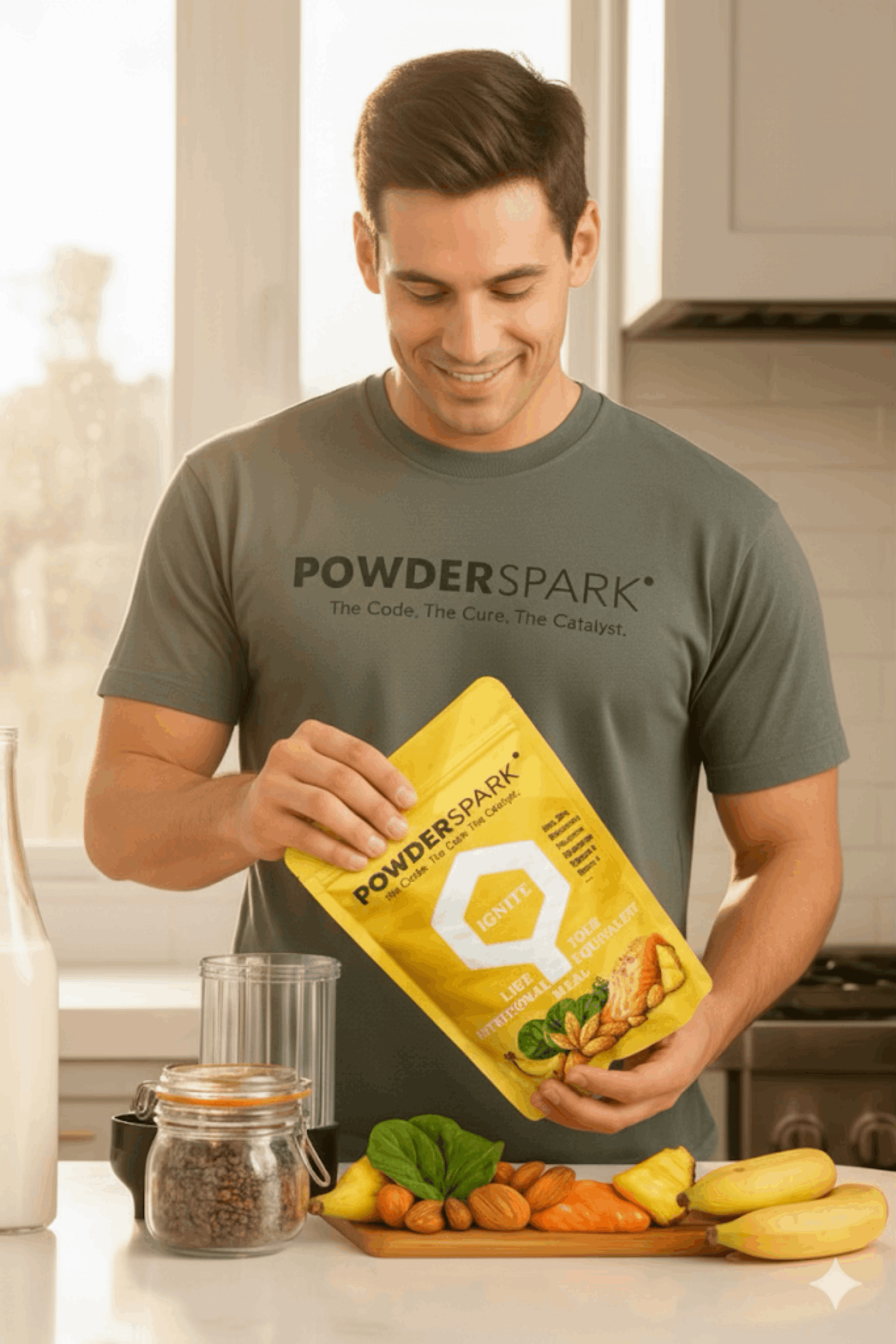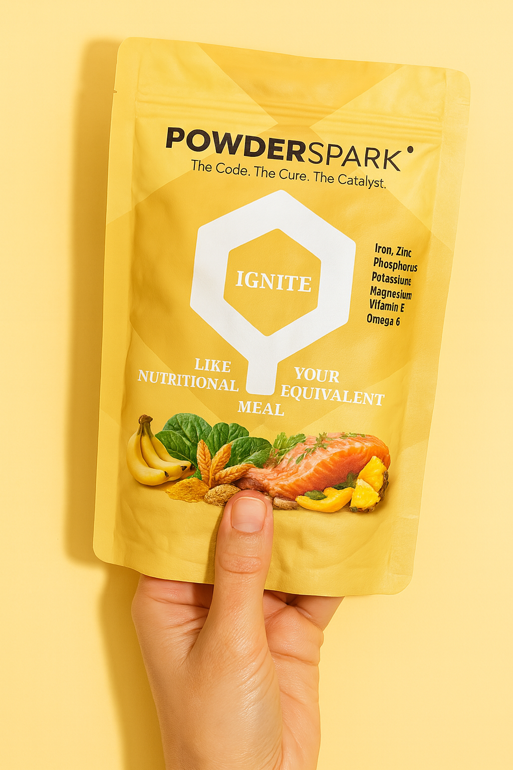 With PowderSpark, a single scoop delivers the concentrated nutritional equivalent of dozens of foods, proteins, vitamins, and minerals your body would otherwise struggle to absorb from a normal diet.